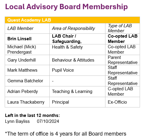 Quest's Local Advisory Board (LAB) plays a key role in supporting MacIntyre Academies Trust Board to fulfil their regulatory duties by providing local scrutiny.