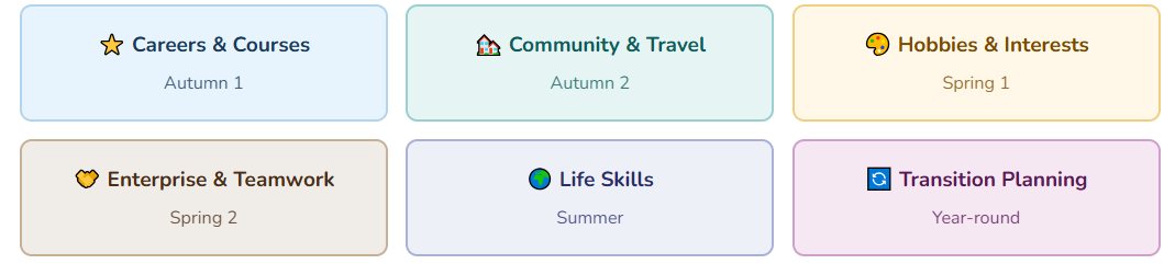 Our PfA curriculum is organised into six themed half-terms, each linking directly to careers preparation: